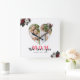 White Red Floral Heart Shaped Gift for Mother day Square Wall Clock