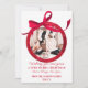 White Red Glitter Bow Ornament Photo Christmas Holiday Card