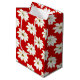 White Red Gold Poinsettia Pattern Medium Gift Bag
