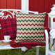 White Red Green Beige Chevron Pattern Cushion