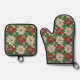 White Red Green Gold Poinsettia Oven Mitt & Pot Holder Set