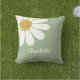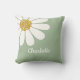 White Retro Modern Daisy Flower Custom Name Throw Pillow . Easily customisable with desired text or background colour