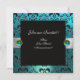 WHITE RIBBON BLUE TURQUASE BLACK DAMASK MONOGRAM INVITATION