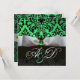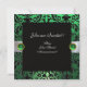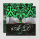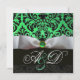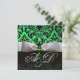 WHITE RIBBON EMERALD GREEN BLACK DAMASK MONOGRAM INVITATION