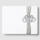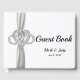 Elegant white ribbon and infinity heart decorate this guestbook. Wedding guest books are fun for both the couple and their celebrants. Invite attendees to leave you well-wishes at your reception, and you're guaranteed to have a keepsake to look back on for years to come. Plus, your guests will get to leave their mark on your event, not to mention put in writing whatever they didn't have a chance to express in person on the big day. Personalise the book by changing the text in the fields provided. You can change font style, size, and colour.