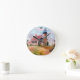 The clock did not take as long to arrive as I thought it might and was extremely well packaged. I didn't do the measurements so I didn't realize it is a little smaller than the average clock but that does not matter (just make sure you check if that's important to you).It is really nifty! It seems very solid and well made not flimsy at all. It has been going well and has kept good time in its few weeks on my wall. Nice product. Gets noticed too! Nicer in real life than the picture but true to the picture