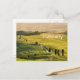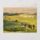 Postcard of a landscape in Tuscany with the famous strada Bianca (white road/dirt road) Gladiator Road towards Terrapille with cypresses along the route in the early morning near Pienza in Val d'Orcia valley in Italy with the text: 'Tuscany'.