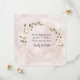 White nautical rope frame with frayed ends, hydrangea flowers, and green ivy on soft blush pink watercolor abstract.