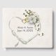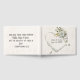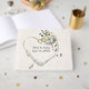 White rose bouquet with a white ribbon, featuring a heart with a Bible verse on the backside.
