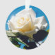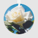 White rose under blue sky. Vibrant photo of a beautiful blooming rose makes a great floral wall art gift. The calm beauty of white rose reflects new beginnings, purity,loyalty and innocence. White roses symbolise the young love that the bride has for her spouse. White roses also symbolise the foundation of a relationship, which is why they are often seen on a wedding day. The white rose is a traditional wedding flower. White rose is a fitting flower for celebrating a new romantic and marital bond.