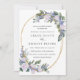 Elegant white roses are paired with small blue flowers in this summer wedding invitation. They are nestled in deep green foliage for a modern botanical vibe.The leaves and vines weave in and out of the multi-strand oval gold frame. The back of the invitation is a deep cornflower blue. This shade of blue can also read as purple to some. It is pretty shade that rests somewhere between blue and purple. This wedding invitation is part of the White Rose Blue Floral collection that contains templates you can use to create a unique wedding stationery suite.