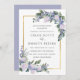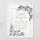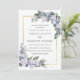 Elegant white roses are paired with small blue flowers in this summer wedding invitation. They are nestled in deep green foliage for a modern botanical vibe. The back of the invitation is a deep cornflower blue. This shade of blue can also read as purple to some. It is pretty shade that rests somewhere between blue and purple. A gold frame surrounds your wedding details. This wedding invitation is part of the White Rose Blue Floral collection that contains templates you can use to create a unique wedding stationery suite.