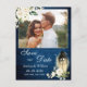 White Rose Blue Wood PHOTO Wedding Save the Date Postcard