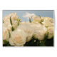 White roses in bloom toward blue summer sky