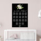 Elegant, keepsake 18-Table seating chart. Beautiful and easy DIY wedding sign features a white rose posy at the top. At the bottom is a white rose wreath with your wedding date. The wedding couple names are written in a carefree script font. The white text and roses are stunning against the black background. Frame it (frames are available on Zazzle) to use at your reception - then take it home as a keepsake of those who attended your wedding. This seating chart is part of the Antique Roses collection that contains many DIY wedding templates to create a personalised wedding ceremony and reception. You should see a link to it on this page. If you don't or need help with an item, please contact me.