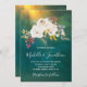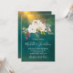 Elegant wedding Christian invitation depicts a beautiful white rose floral watercolor with a simple design including red berries, gold leaves and greenery on a gold and dark blue/green abstract background. It features inspirational introduction, "To God be the Glory." If there is something you don't see or if you would like changes please contact me with the chat button on this page. _