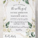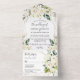 White Rose Hydrangea Elegant Geometric Wedding All In One Invitation
