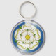 The white Rose of Yorkshire flag in a surreal glass bubble ringed with a surreal silver frame and on a blue background as the flag has..