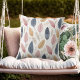 White Rose Orange Blue Boho Leaves Cushion