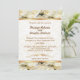 Subtle and elegant in gold edged damask, with a lovely profusion of white roses the border. Customise front and back with your Bridal Shower information.