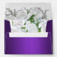A charming floral purple wedding envelope with a stunning bunch of white roses printed on the inside.