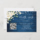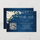 White Roses Blue Wood Lantern Wedding QR code RSVP Card