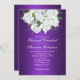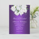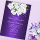 Mark your calendars in style with this enchanting purple wedding invitation! A cascade of pristine white roses, symbolising purity and new beginnings, adorns the top of this elegant design. The rich purple hues create an atmosphere of regal romance. The invitation features ample space for you to personalise all the essential details of your special day in a classic, romantic script font. This exquisite invitation promises to capture the hearts of your guests and set the stage for a truly unforgettable wedding celebration.