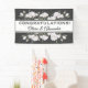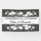 White Roses Elegant Floral Wedding Banner for your Wedding Reception. Designed with White Rose Blossoms on a Charcoal background with text: Congratulations and the Bride and Groom's First Names. To personalise, simply insert the names into our template, replacing the sample text.