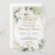 White roses eucalyptus gold frame rise and shine wedding Brunch invitations,