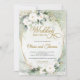 White roses eucalyptus greenery gold oval wedding invitation