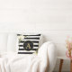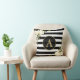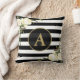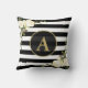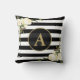 WHITE ROSES Gold Monogram Black White Striped Cushion