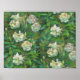 White Roses Green Leaves Flowers Floral Painting Poster