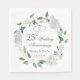 White Roses Greenery 25th Wedding Anniversary Napkin
