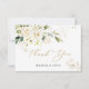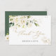 Gorgeous white cream roses and gold floral with greenery foliage in watercolor style Wedding Thank You flat card.