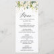 White Roses Greenery Gold Floral Wedding Menu.