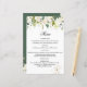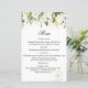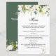 White Roses Greenery Wedding Menu Paper Sheet