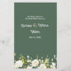 This design features an illustration of white roses with colourful vibrant foliage in watercolor style. On the top of the card - golden and greenish effect confetti.