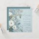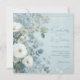 White Roses Hellebores Silver Eucalyptus floral wedding invitation featuring elegant calligraphy script modern watercolor flowers frosty pale blue background and snowflake details