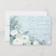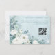 White Roses Hellebores Silver Eucalyptus floral wedding RSVP card featuring elegant calligraphy script modern watercolor flowers frosty pale blue background and QR code