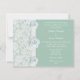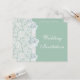 Elegant custom mint green wedding invitations with beautiful white floral printed lace, pretty white roses and ribbon. These romantic classy glamourous invites are decorated on both sides. Chic, trendy, modern invitations with a vintage elegance look. Please note: All invites on Zazzle have flat printed images. Text, font and colour of font can all be customised. If you need assistance customising your product please contact me through my store. I will be happy to help.