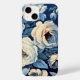 White Roses on Indigo Blue Background Case-Mate iPhone Case