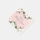 Delicate white roses on the top and bottom of this elegant pink bridal shower napkins, personalisation details in grey typography.