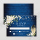 White Roses Royal Blue Wood Lantern Wedding RSVP Card