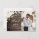 White Roses Rustic Wood Lantern Photo Thank You Card
