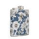 White roses with blue leaves on white hip flask