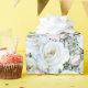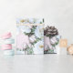 Rose wrapping paper.  White roses make a pattern over high quality paper.  The background is pale pink.  The rose leaves add a pretty green accent colour.