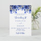 A white background, decorated with blue and white flowers. Personalise and add your names and details.