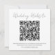 Make your wedding RSVP process seamless, with our RSVP QR code note card. This customisable card features modern black lettering with a clean white background. The front includes a customisable text area and a space to generate a unique QR code for guests to easily RSVP through their smartphones. Go the the "personalise" option, add your wedding website URL to the area provided, and a QR code will generate on the design just for you. On the reverse side, add a personal touch with a photo. Make your special day even more memorable with this chic and functional wedding note card.