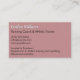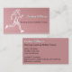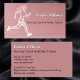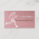 A business card in the colour dusty rose with a drawing in white of a running woman. An elegant and simple business card for an athletic trainer and/or coach.