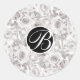 White Rustic Winter Roses Monogram Letter Initial Classic Round Sticker